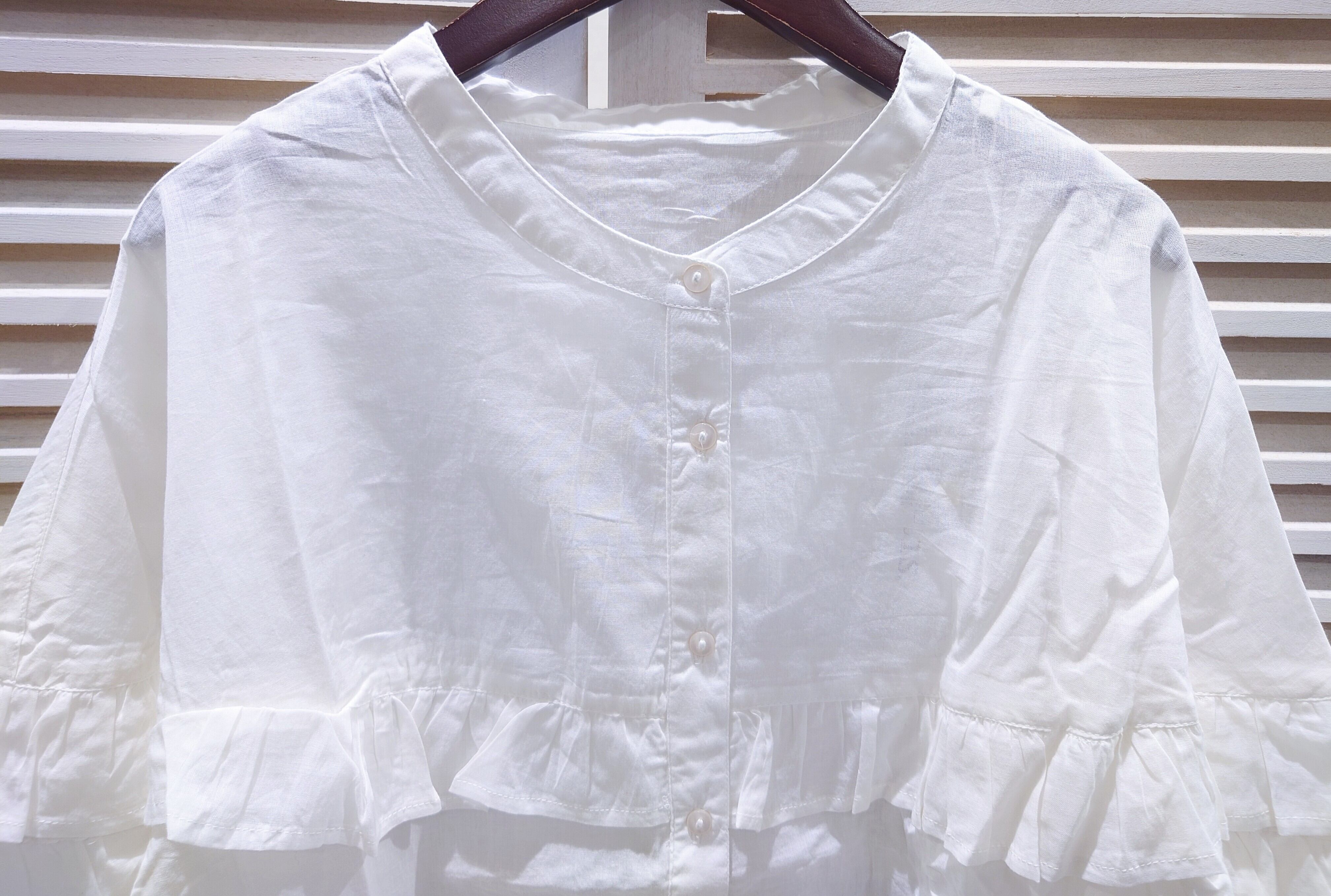 透け感のある軽やかな綿ボイル素材のブラウスです。