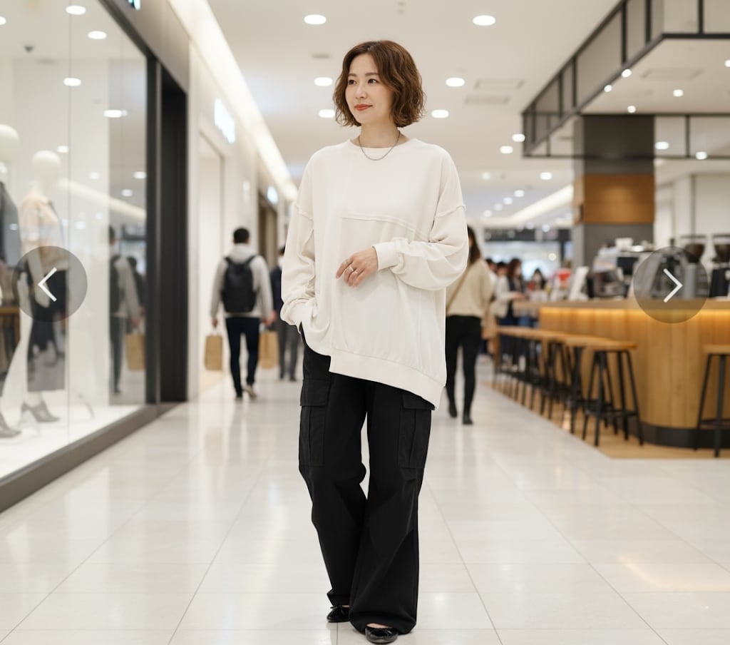 裏毛と布帛を組み合わせたパッチワークデザインのゆったりシルエットなプルオーバーです。