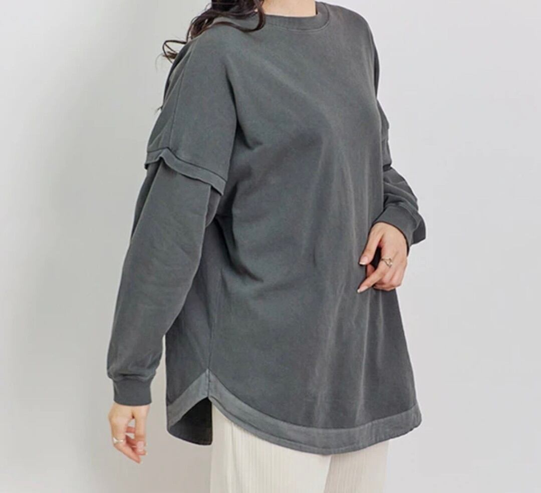 前後どちらでも着られる2way仕様のゆったりシルエットなプルオーバーです。