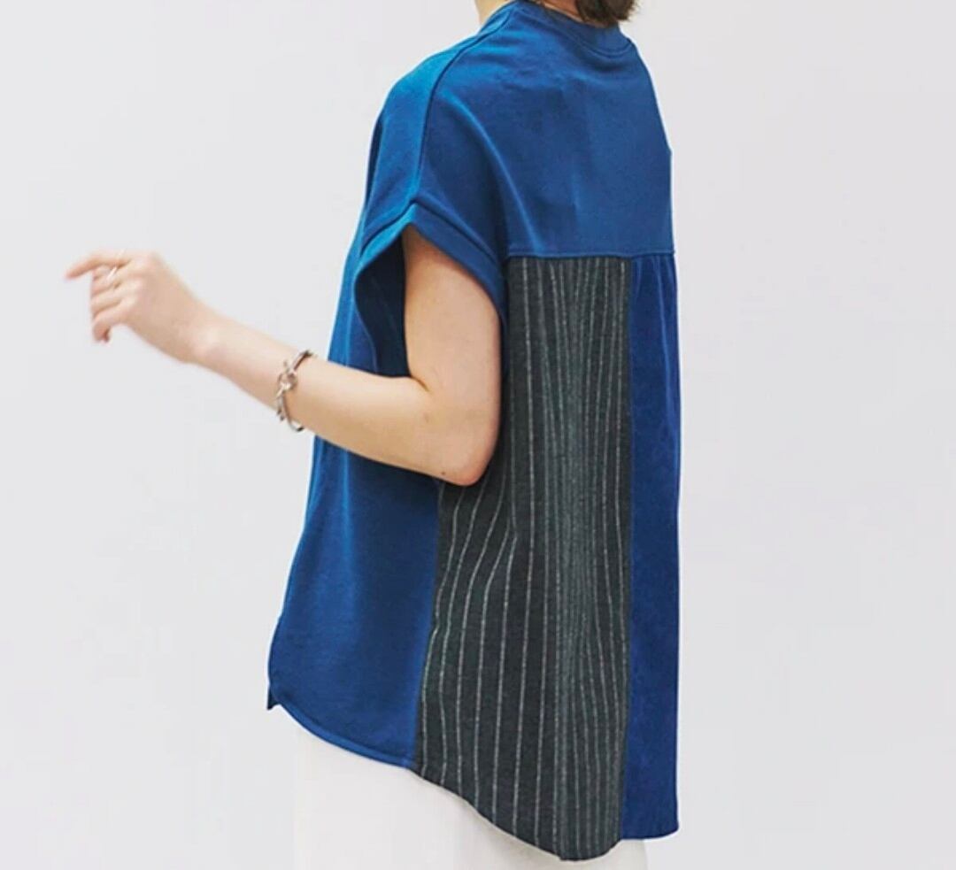 バックスタイルをストライプ柄生地とコーデュロイで生地で切り替えたベストです。