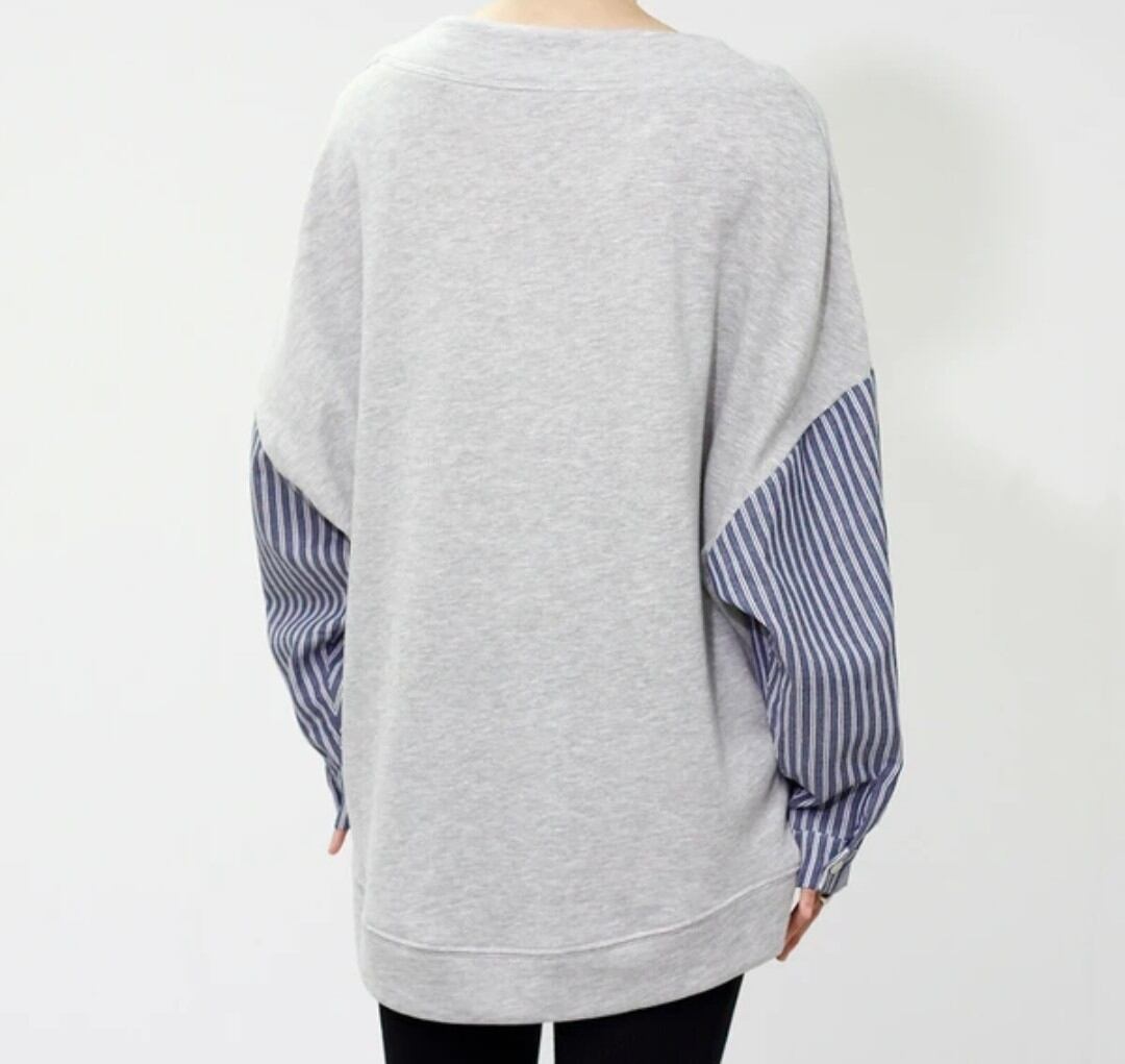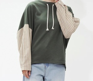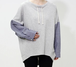 ストライプ柄のシャツ袖ドッキングが可愛い◎