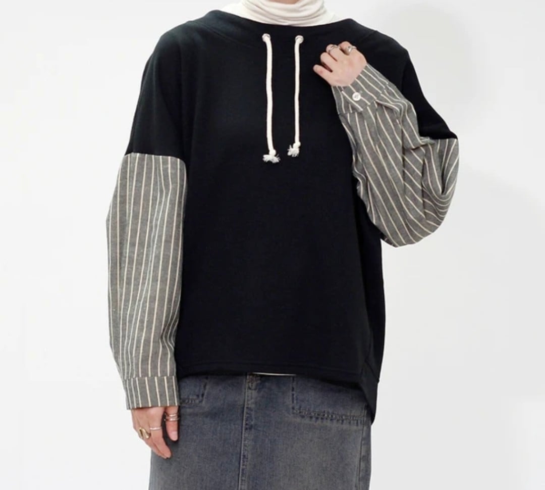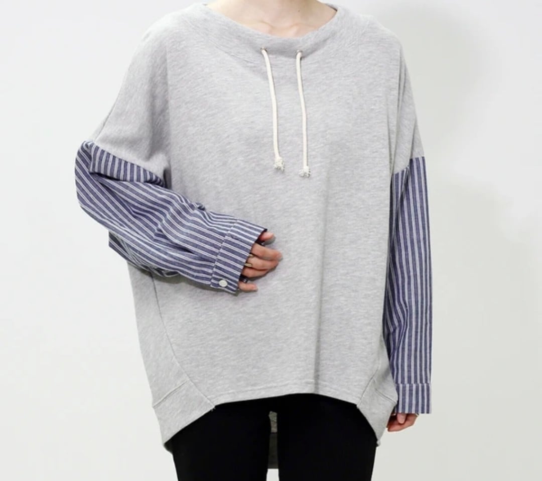 【スペシャルプライス】裏毛配色ルーズハイネックシャツ袖プルオーバー