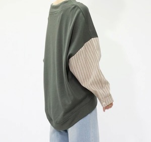 ルーズなネック異素材切替プルオーバーです。