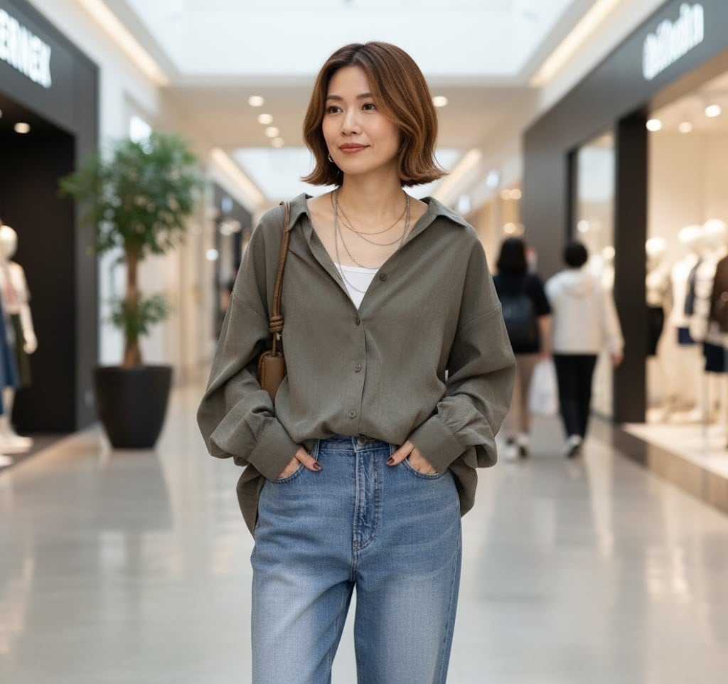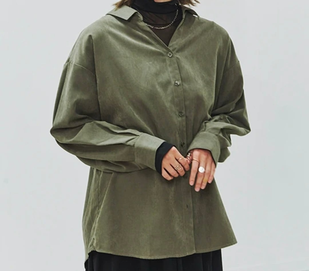 滑らかなピーチスキンの質感が上品な印象のシャツです。