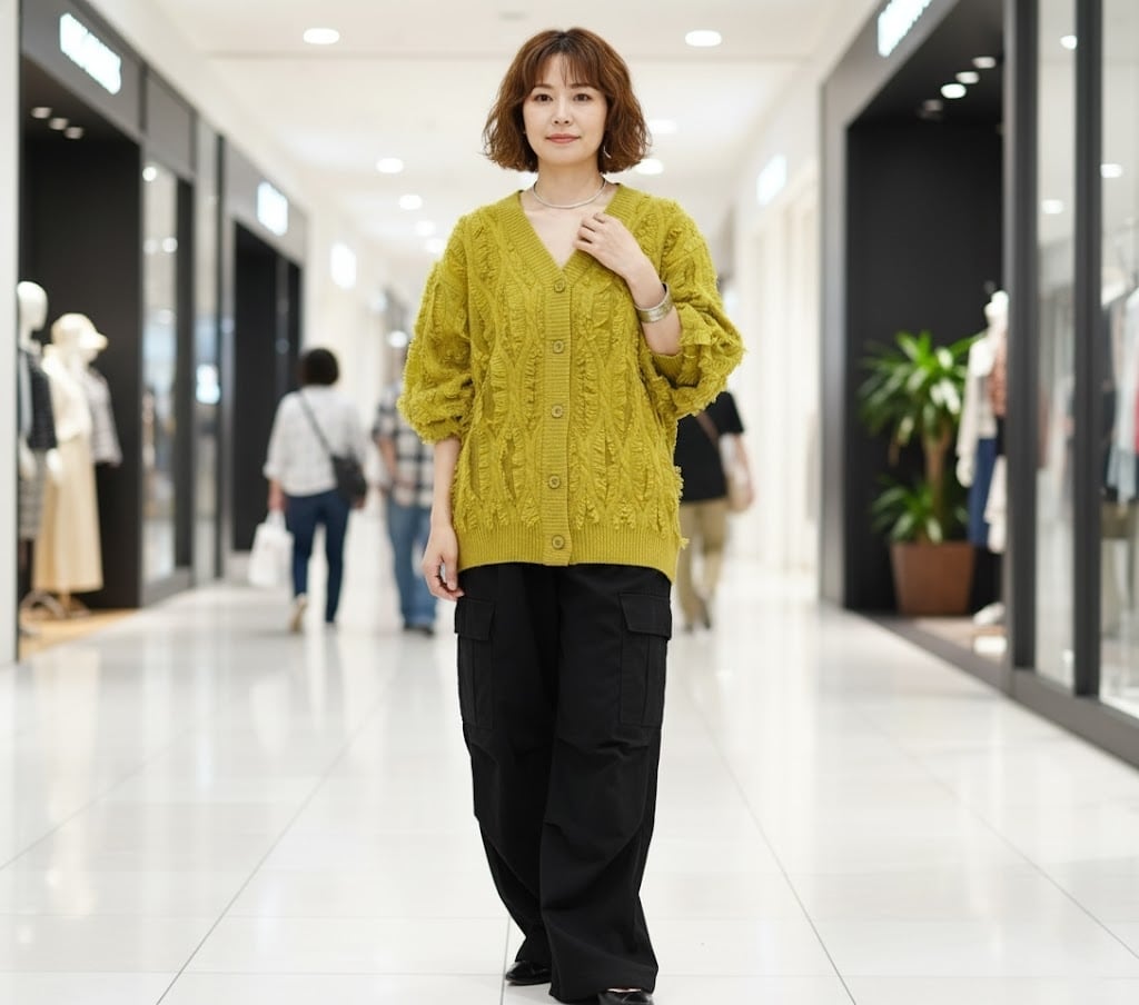 フリンジが印象的な程よくゆったりシルエットなアクリルバルキーニットカーディガンです。