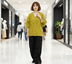 Vネックデザイン全体をすっきり見え◎