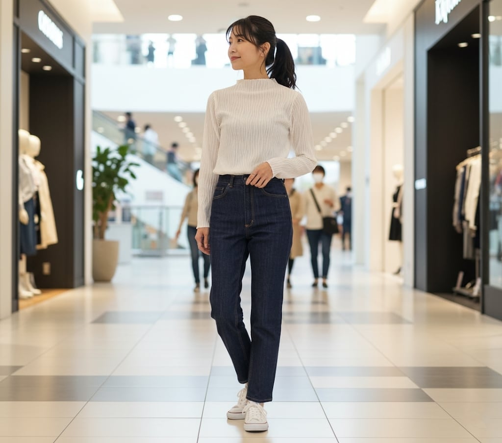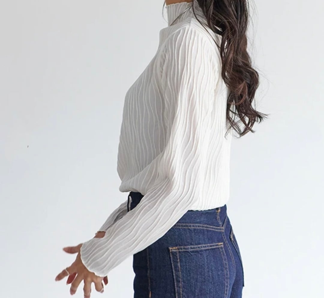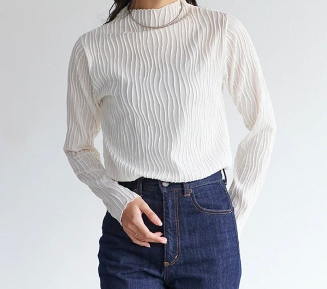 凹凸のあるウェーブジャガード素材のボトルネックのトップスです。